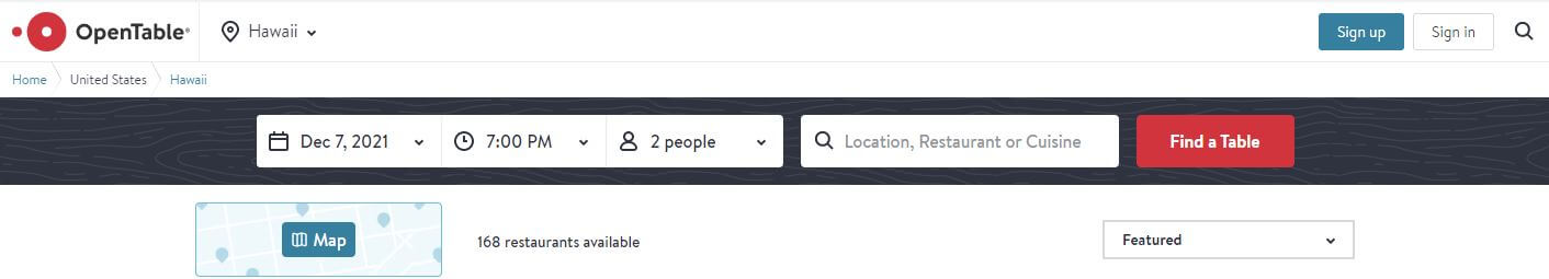 - 오픈테이블 사이트에서 하와이 맛집 예약이 가능