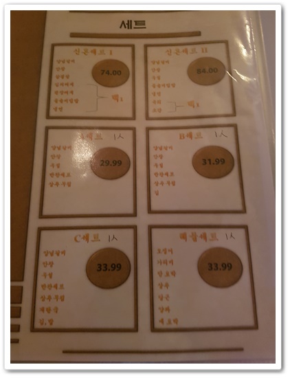 긴자원 메뉴판 입니다. 한글이 반갑더라구요.