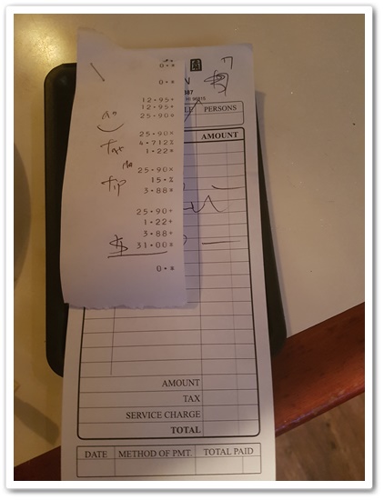 계산서 입니다. 팁까지 포함해서 31불 나왔습니다. 이정도면 가성비도 괜찮은것 같았습니다. 일단 찌개가 맛있었으니까요.