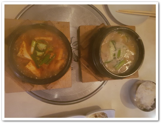 제가 미리 먹어야겠다고 생각하고 갔던 탕 메뉴입니다. 우리 커플은 김치찌개랑 된장찌개 주문을 했습니다. 한국 사람은 역시 김치를 먹어야 힘이 나는것 같습니다.